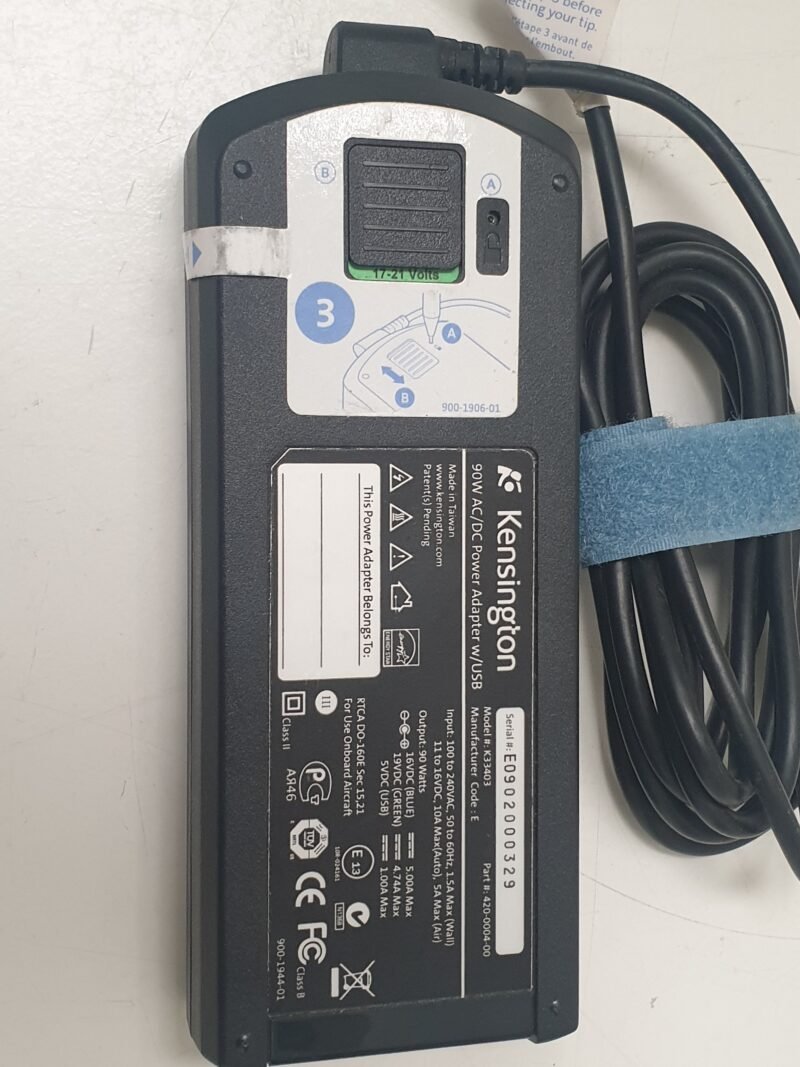 Kensington 90W AC DC power adapter USB E0902000329